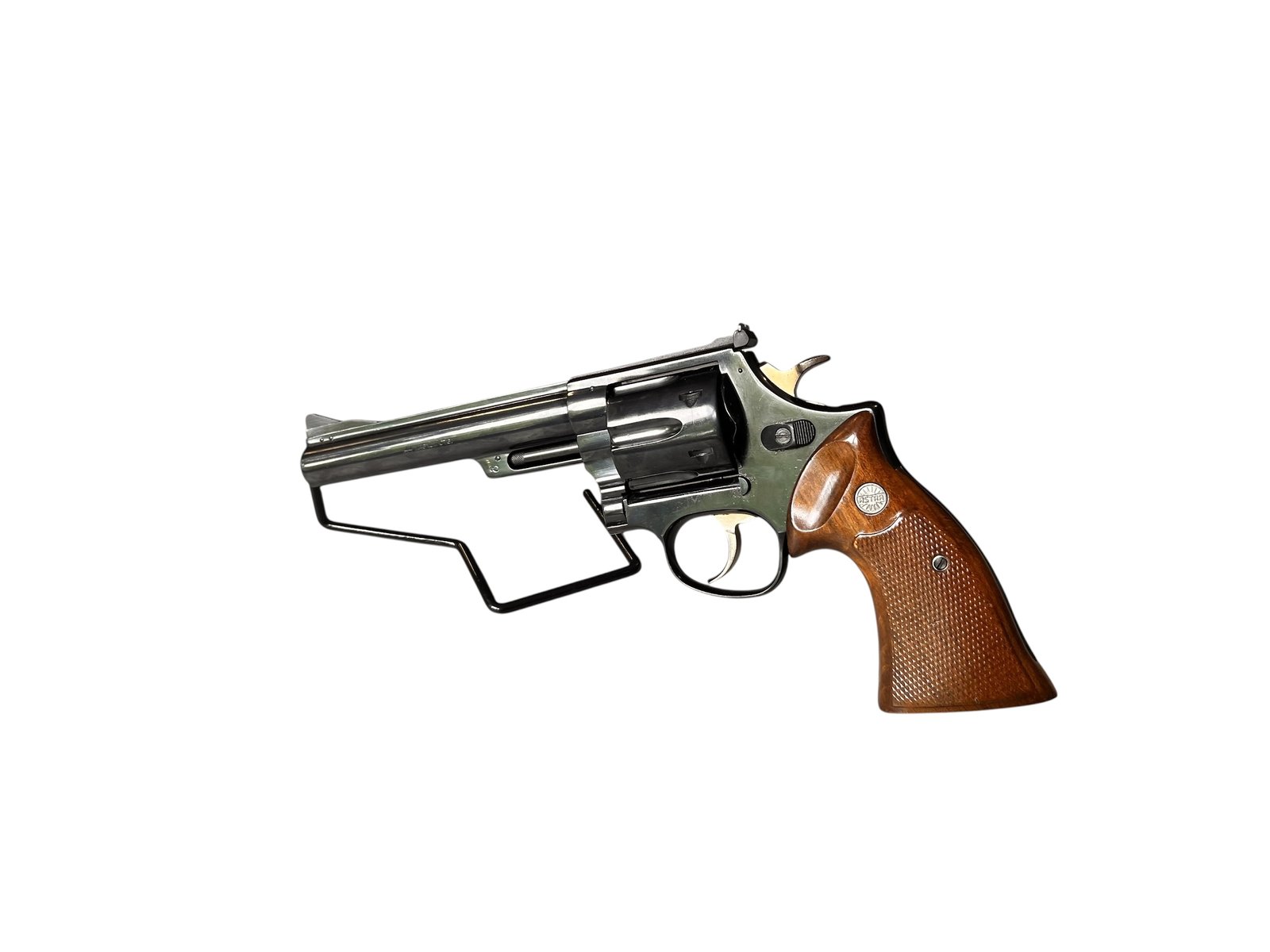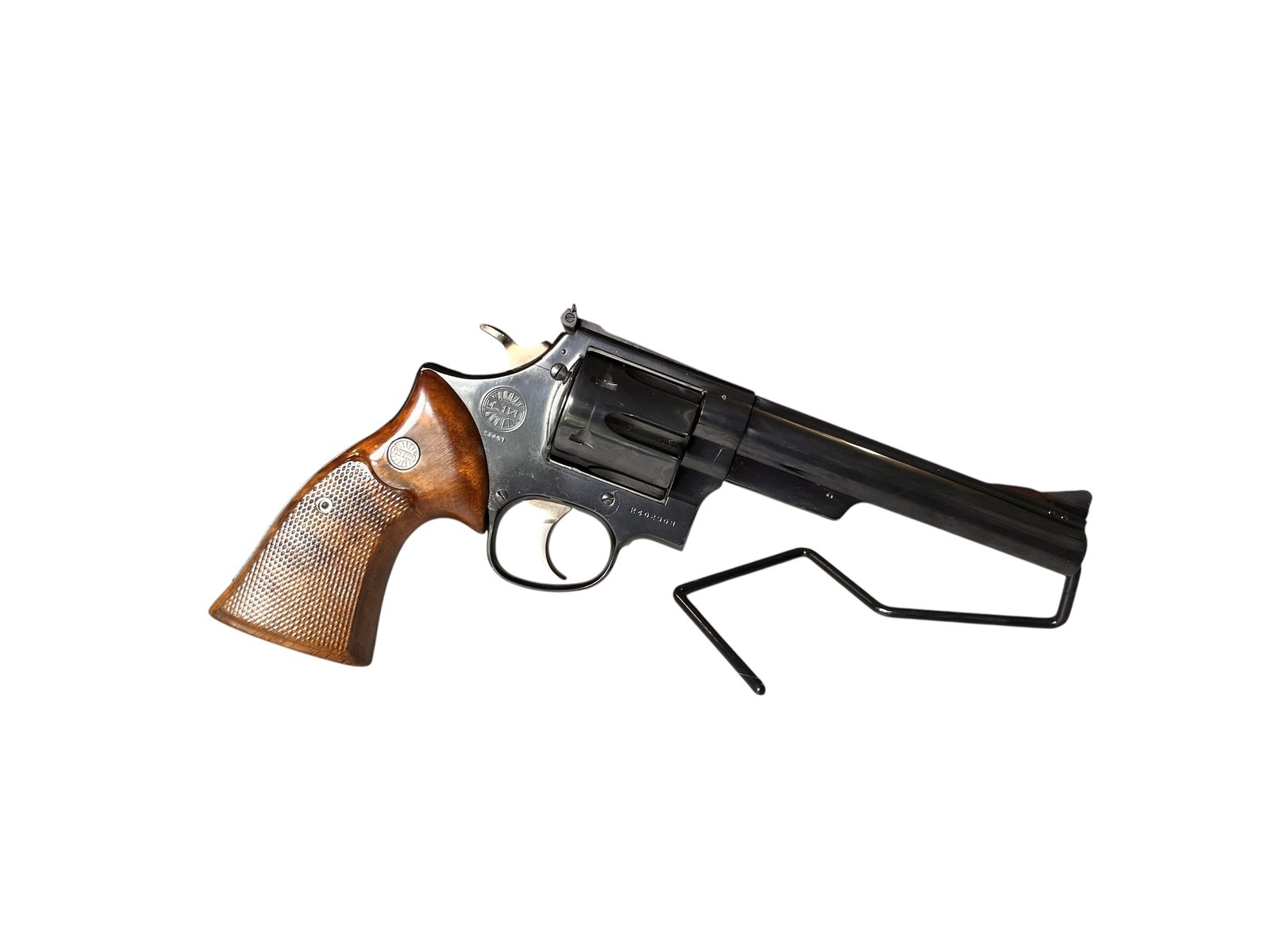Rewolwer Astra .44 Magnum z drewnianymi okładzinami to solidna, pełnowymiarowa konstrukcja o dużym kalibrze, produkowana w latach 80‑tych przez hiszpańską firmę Astra Unceta – wzorowana na rewolwerach Smith & Wesson N‑frame. Stan bardzo dobry – mechanicznie w pełni sprawny, delikatne ślady użytkowania na oksydzie i drewnie, typowe dla użytkowania, lufa w świetnym stanie.