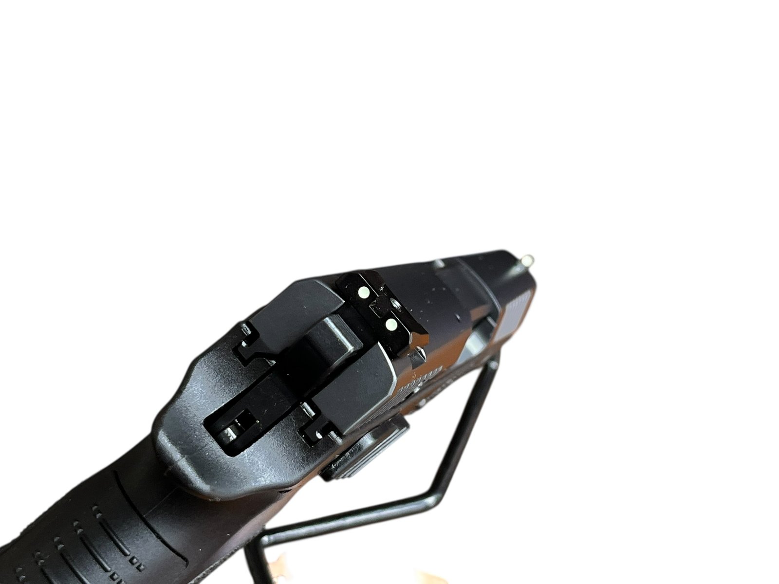 ✅ Bogaty zestaw z ulepszeniami – Ten konkretny egzemplarz wyposażono w powiększoną dźwignię zrzutu zamka, co ułatwia manipulację, oraz dwie powiększone stopki magazynka, które nie tylko zwiększają ich pojemność, ale także poprawiają chwyt i ułatwiają dobycie z ładownicy.