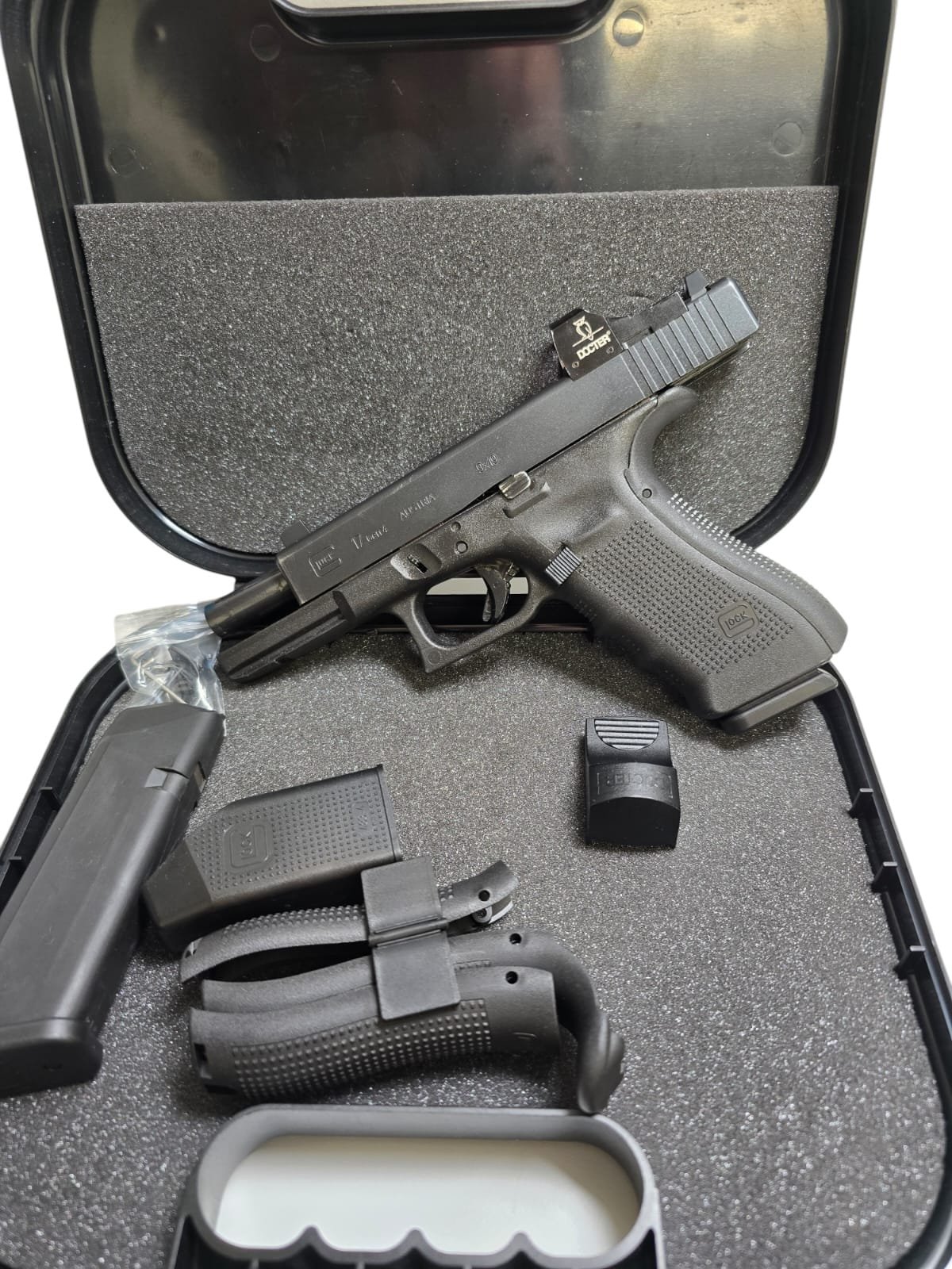 Oferujemy Glock 17 Gen 4 MOS, nowoczesny pistolet półautomatyczny w kalibrze 9x19mm, wyprodukowany w Austrii. Stan techniczny broni jest bardzo dobry, a w zestawie znajduje się działający kolimator Docter, który znacząco zwiększa precyzję strzałów. Wersja MOS (Modular Optic System) pozwala na łatwe zamontowanie różnych celowników optycznych, co czyni ten model wszechstronnym wyborem zarówno do strzelectwa sportowego, jak i rekreacyjnego.