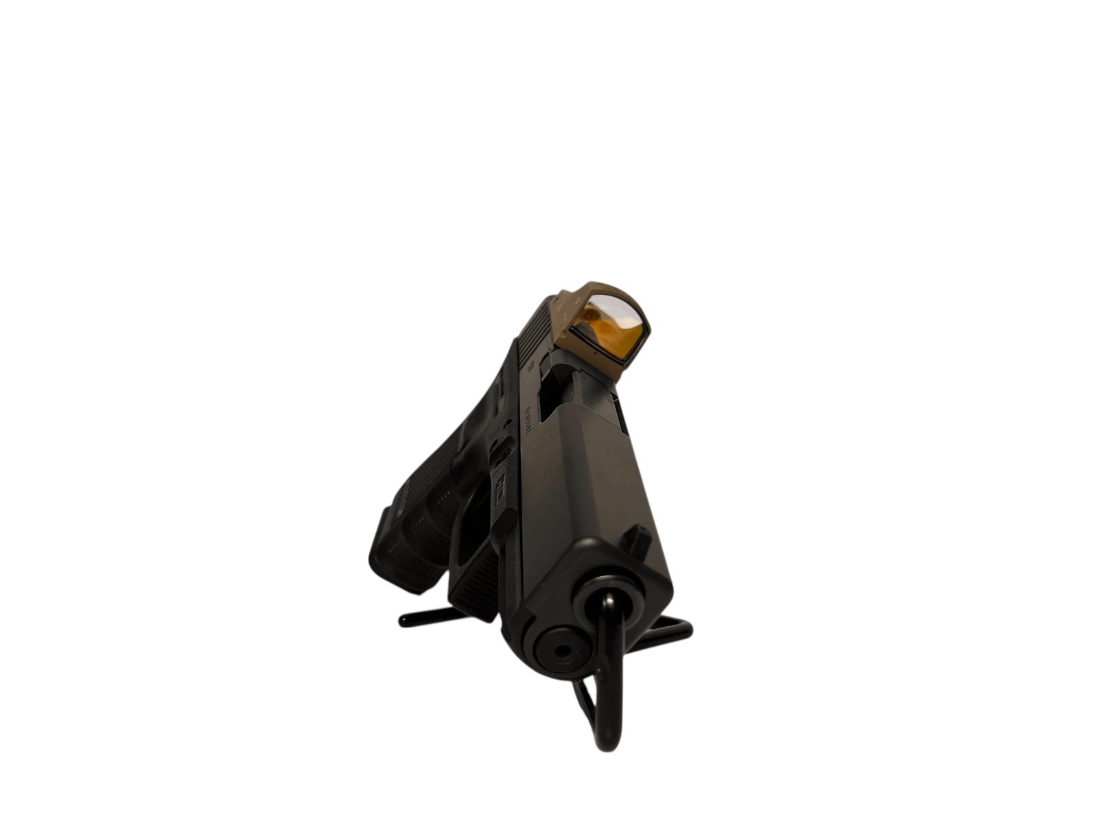 Glock 19 Gen 4 MOS to kompaktowy pistolet samopowtarzalny, łączący w sobie wszechstronność, niezawodność i nowoczesne rozwiązania technologiczne. Dzięki systemowi Modular Optic System (MOS), umożliwia łatwy montaż kolimatorów bez potrzeby modyfikacji broni. Prezentowany egzemplarz jest wyposażony w kolimator Docter, co zapewnia szybkie i precyzyjne celowanie. Broń znajduje się w bardzo dobrym stanie technicznym, z minimalnymi śladami użytkowania. W zestawie znajduje się oryginalne pudełko oraz dwa magazynki.
