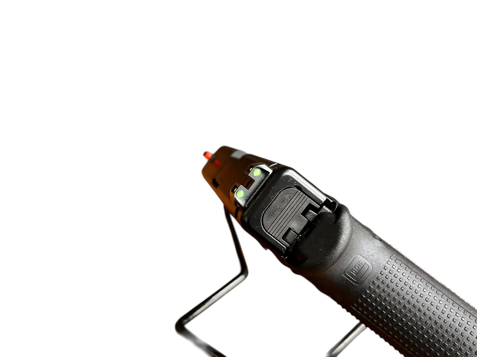 ✅ Tuningowe przyrządy światłowodowe – Zamontowane na pistolecie stalowe, światłowodowe przyrządy celownicze to ogromny atut. Pozwalają na błyskawiczne zgranie muszki ze szczerbinką i intuicyjne celowanie, zwłaszcza w warunkach dobrego oświetlenia na strzelnicy dynamicznej.