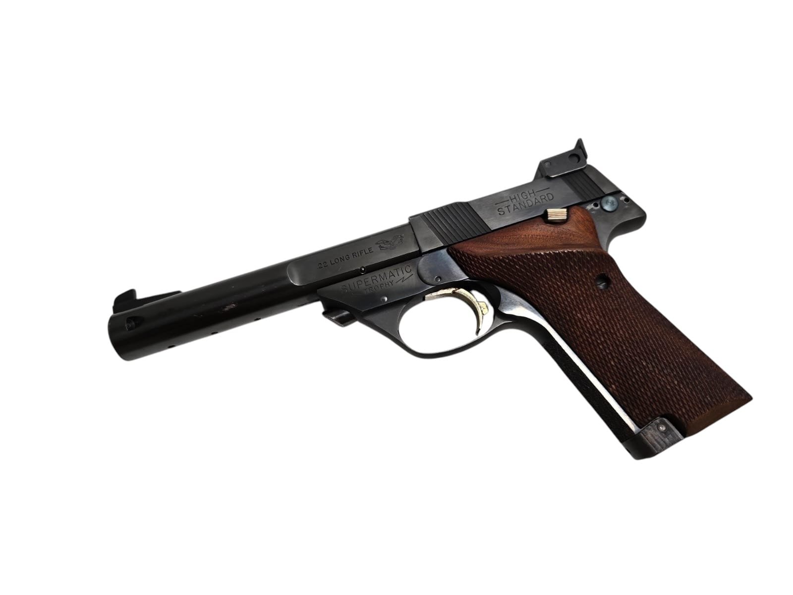 Przedstawiamy High Standard Mod. 106 Military, kaliber .22lr. Klasyczny pistolet sportowy, ceniony za wyjątkową precyzję i niezawodność. Ten model jest w bardzo dobrym stanie technicznym i wizualnym, co czyni go doskonałym wyborem dla miłośników strzelectwa sportowego oraz kolekcjonerów. Wykończony w eleganckiej czarnej oksydzie, z drewnianymi okładzinami, zapewnia nie tylko estetyczny wygląd, ale także wygodę użytkowania.