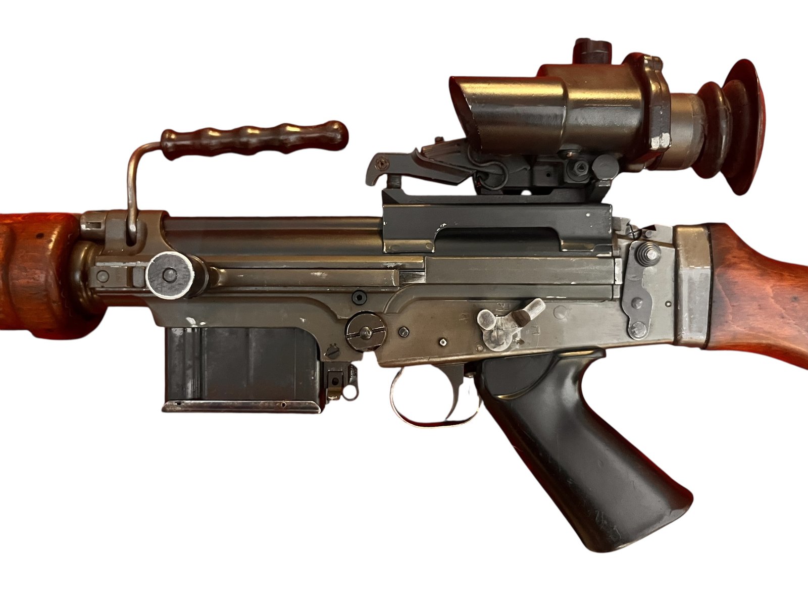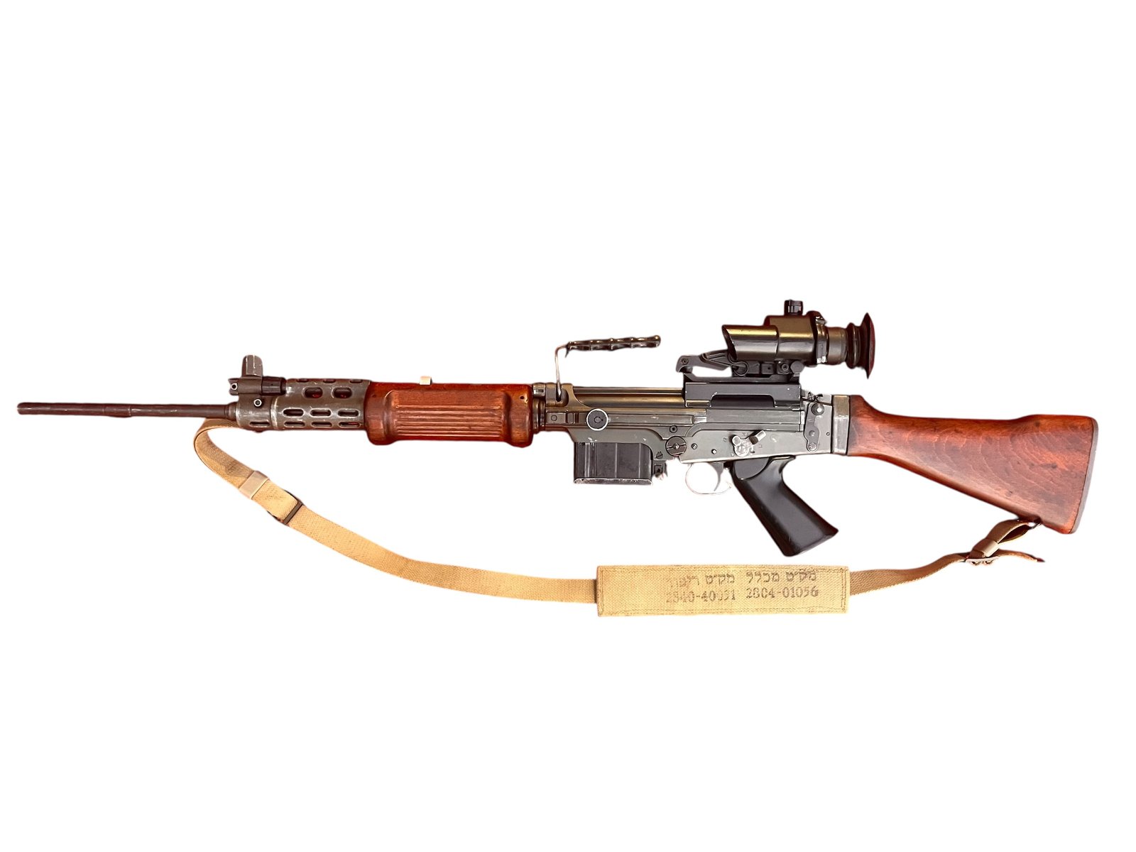 Szukasz potężnego karabinu bojowego z duszą i historią, która kształtowała losy Bliskiego Wschodu? Chcesz posiadać broń, która jest ikoną Izraelskich Sił Obronnych (IDF), w unikalnym zestawie z epoki? Ten izraelski FN FAL, znany jako "Romat", z oryginalnymi hebrajskimi oznaczeniami i celownikiem TRILUX, to broń, która jest żywą legendą.