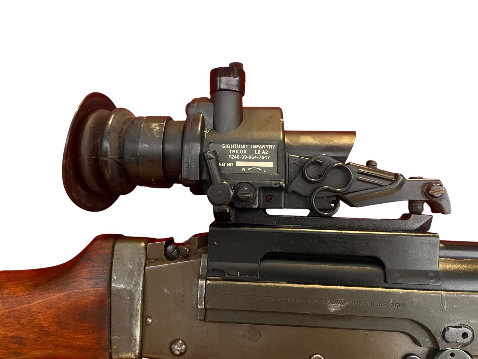✅ W zestawie z celownikiem bojowym SUIT TRILUX – Legendarny brytyjski celownik L2A2, który dzięki wkładce z trytem (TRILUX) umożliwiał celowanie w warunkach słabego oświetlenia. Sam w sobie jest obiektem kolekcjonerskim.