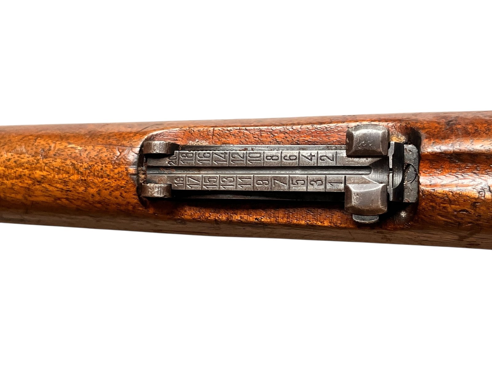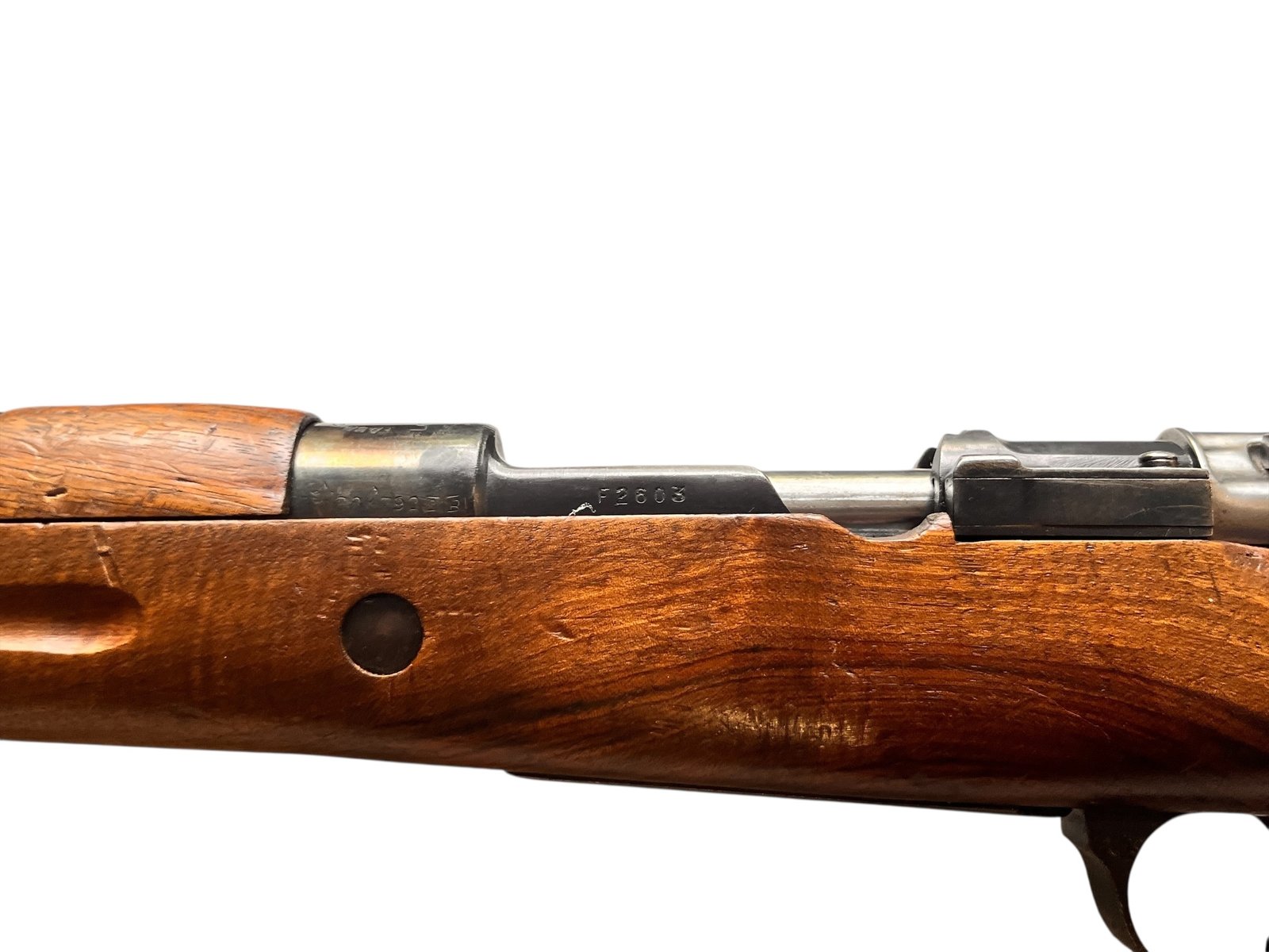 Prezentowany egzemplarz znajduje się w stanie dobrym minus. Lufa jest w ładnym stanie, z wyraźnym gwintem, co świadczy o jej dobrym zachowaniu i potencjale strzeleckim. Karabin posiada oznaczenia Guardia Civil, co może świadczyć o jego służbie w tej formacji.