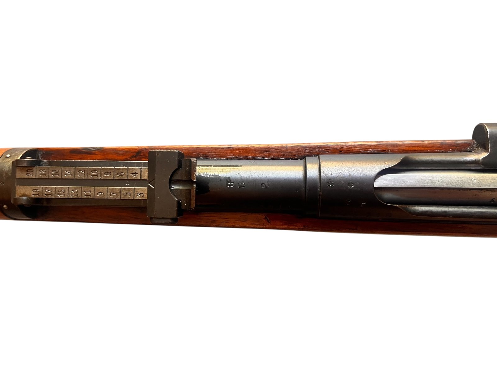 Stan "dobry +" idealnie opisuje ten egzemplarz. To broń z ponad stuletnią historią, która nosi na sobie naturalne ślady służby wojskowej. Jednocześnie jest w doskonałej kondycji technicznej, z piękną lufą, co gwarantuje mnóstwo satysfakcji ze strzelania. To idealna propozycja dla kolekcjonera lub strzelca, który ceni sobie unikalne i precyzyjne konstrukcje.