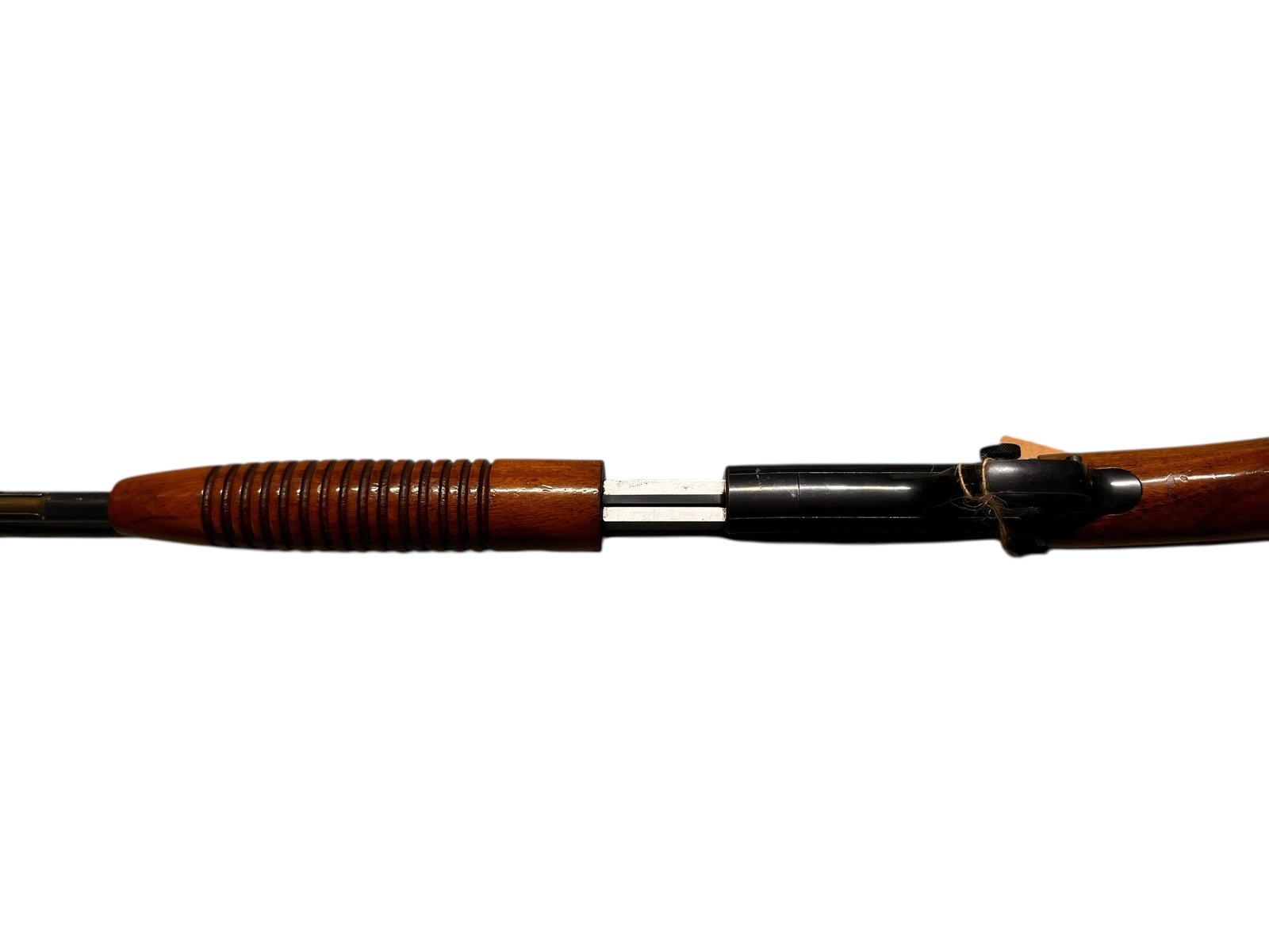 - Czy to jest strzelba? Nie, mimo systemu przeładowania "pump action" znanego ze strzelb, jest to karabinek strzelający amunicją karabinową bocznego zapłonu .22 LR.