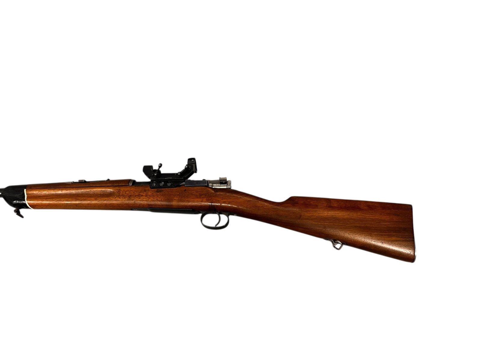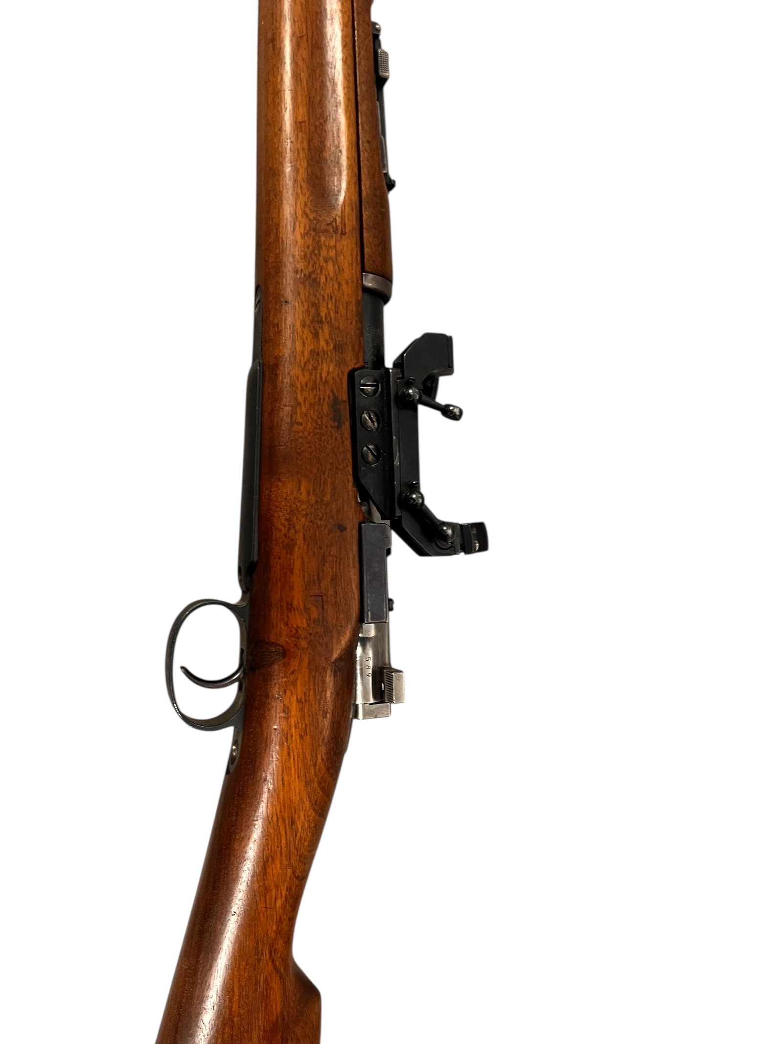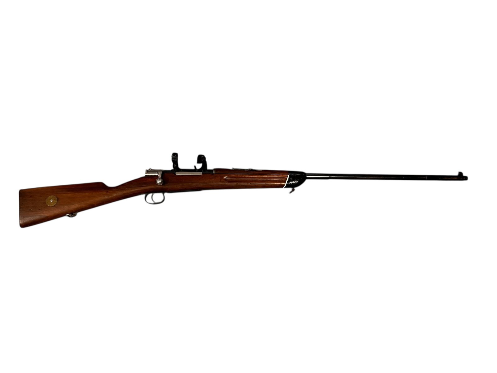 Karabin Mauser M96 Carl Gustafs z 1913 roku to klasyczna broń powtarzalna, ceniona za precyzję i niezawodność. Wyprodukowany w szwedzkiej fabryce Carl Gustafs Stads Gevärsfaktori, model ten charakteryzuje się długą lufą oraz doskonałym wyważeniem, co przekłada się na wysoką celność strzałów. Prezentowany egzemplarz posiada boczny montaż pod lunetę, co zwiększa jego funkcjonalność i czyni go idealnym wyborem dla strzelców długodystansowych oraz kolekcjonerów.