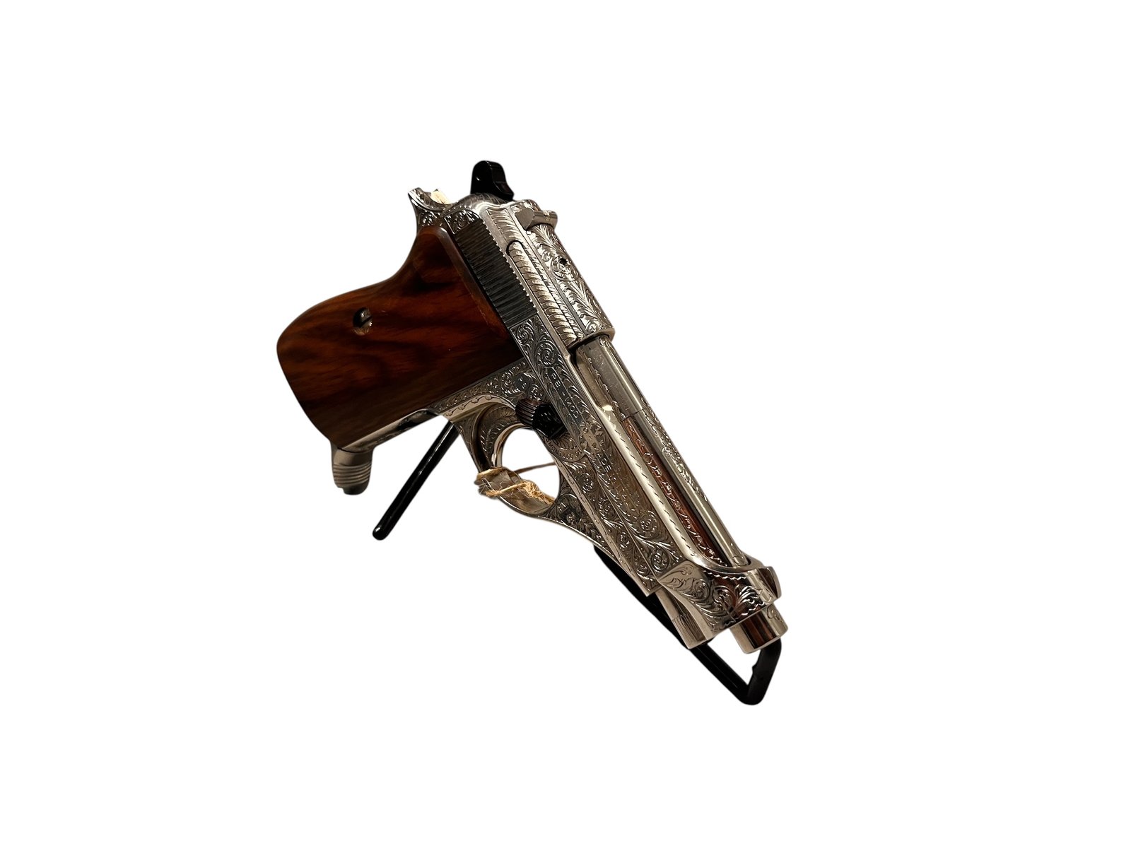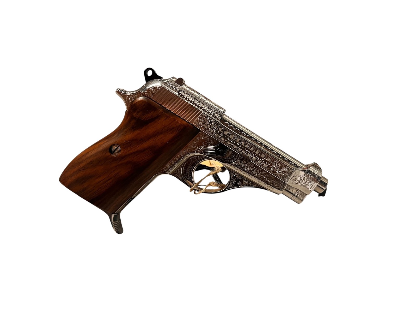 Beretta 70 Luxus z 1974 roku to niezwykle rzadki i poszukiwany przez koneserów pistolet. Ten wyjątkowy egzemplarz, zachowany w perfekcyjnym, kolekcjonerskim stanie "jak nowy", jest świadectwem mistrzostwa rzemieślników Beretty. Ręcznie wykonane grawerunki i najwyższa jakość wykończenia czynią go nie tylko bronią, ale prawdziwym dziełem sztuki.
