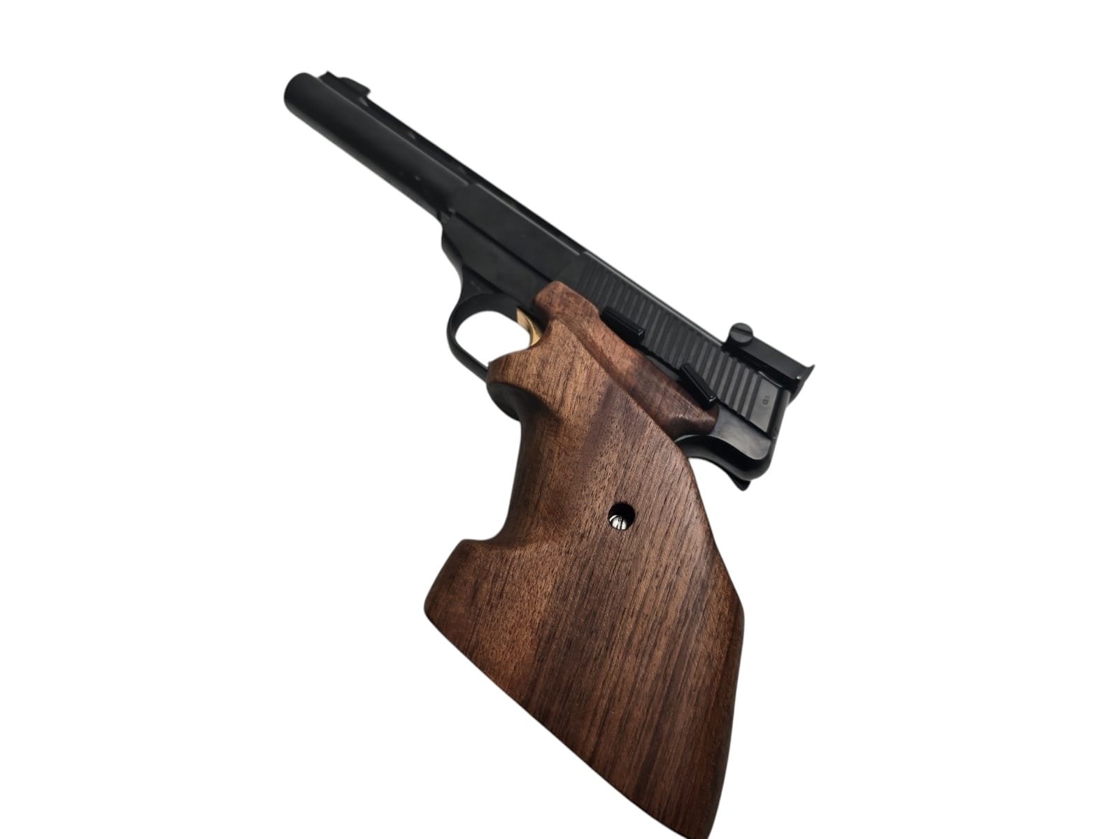Oferujemy pistolet Browning w kalibrze .22 LR, wyprodukowany w Belgii, w bardzo dobrym stanie technicznym i wizualnym. Ten klasyczny model jest wyposażony w ergonomiczne drewniane okładziny zaprojektowane dla praworęcznych strzelców, co zapewnia wyjątkowy komfort podczas użytkowania. Broń wyróżnia się precyzyjną mechaniką oraz wysoką jakością wykonania, co czyni ją idealnym wyborem zarówno do strzelectwa sportowego, jak i rekreacyjnego.