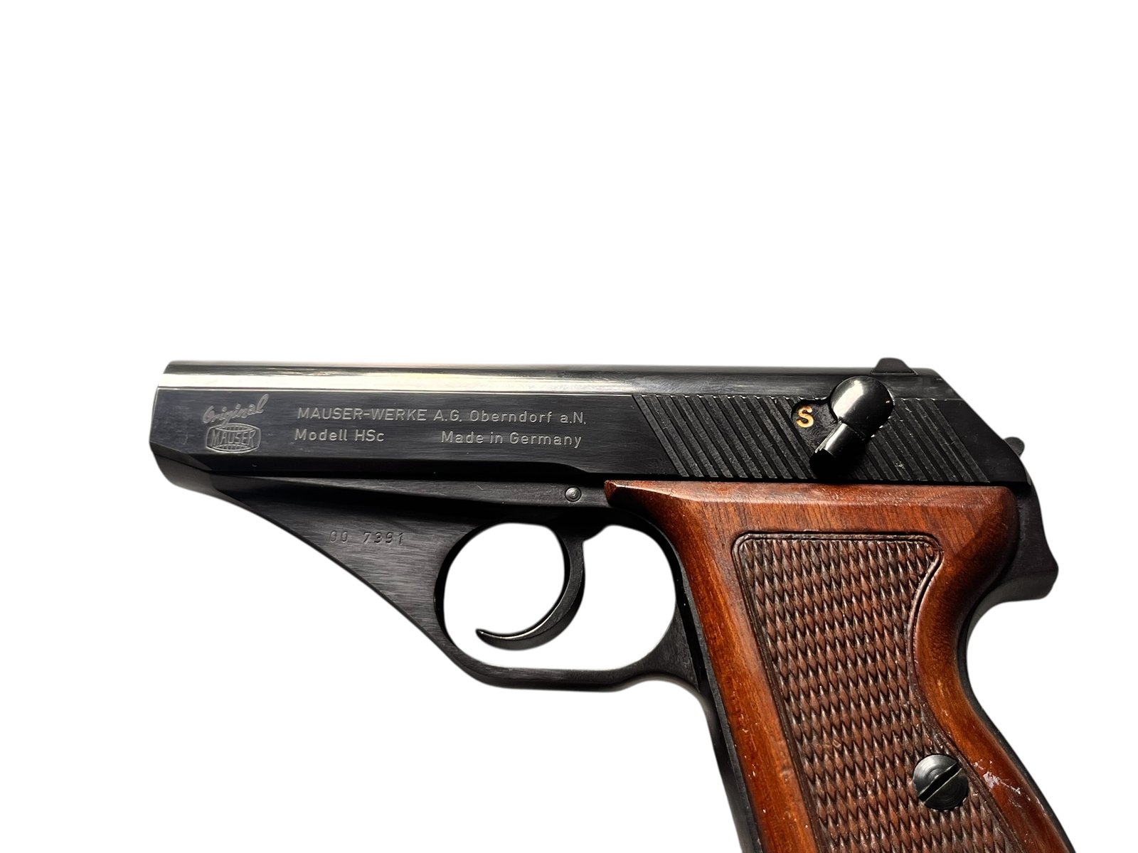 Mauser HSc to klasyczny niemiecki pistolet samopowtarzalny, produkowany do 1977 przez firmę Mauser-Werke w Oberndorfie. Model ten charakteryzuje się eleganckim designem, wysoką jakością wykonania oraz niezawodnością działania. Prezentowany egzemplarz pochodzi z lat 1968–1969 i jest w stanie bardzo dobrym, co czyni go atrakcyjnym zarówno dla kolekcjonerów, jak i miłośników broni palnej.