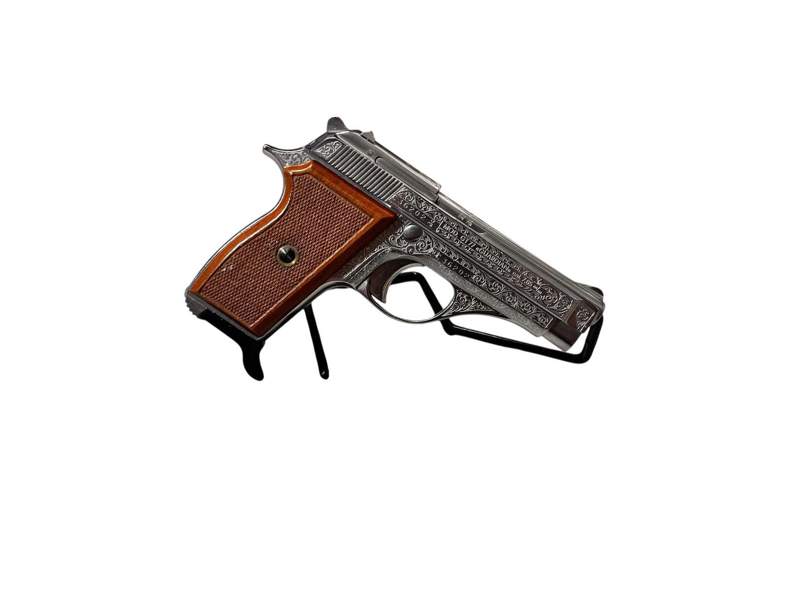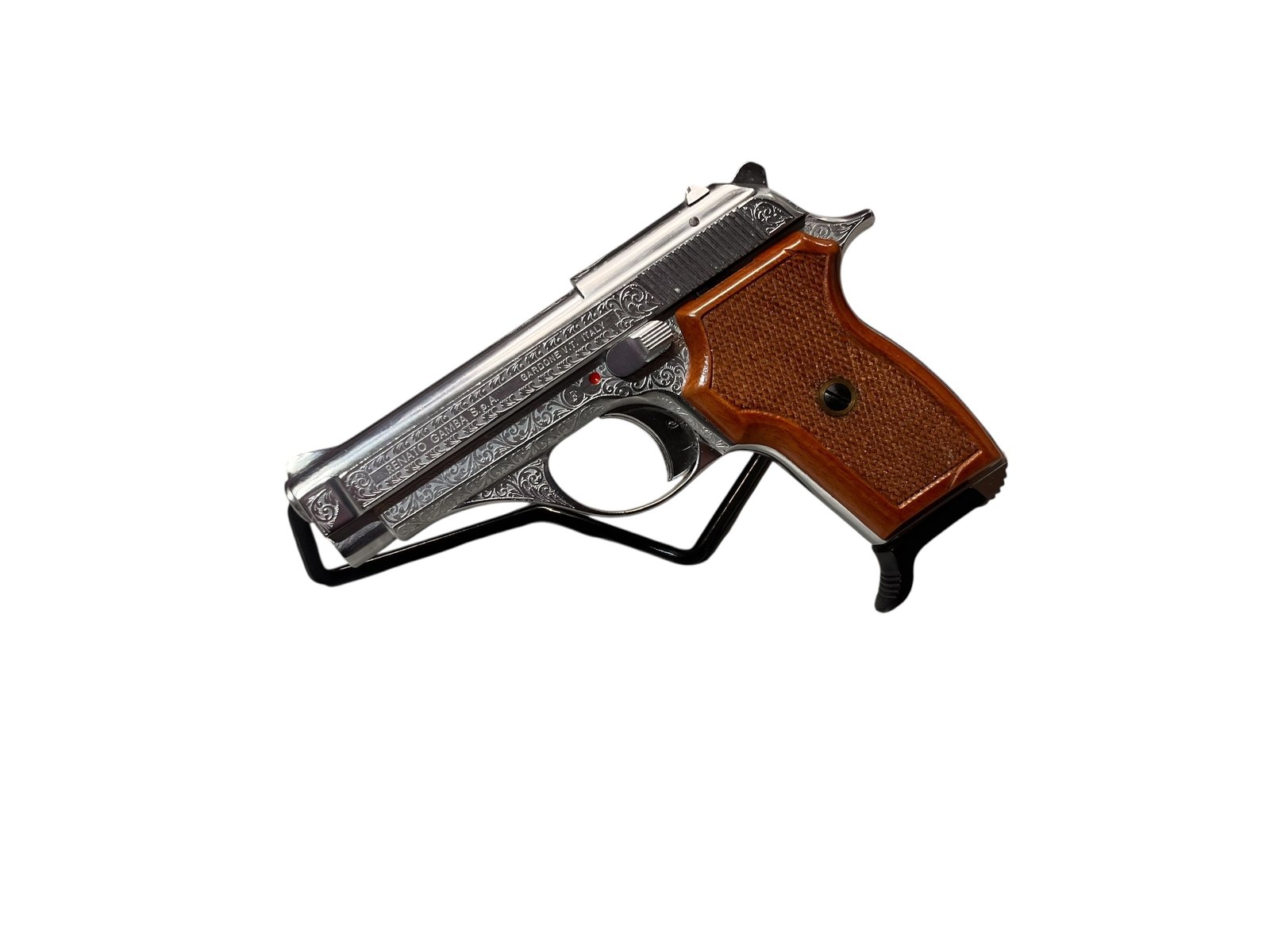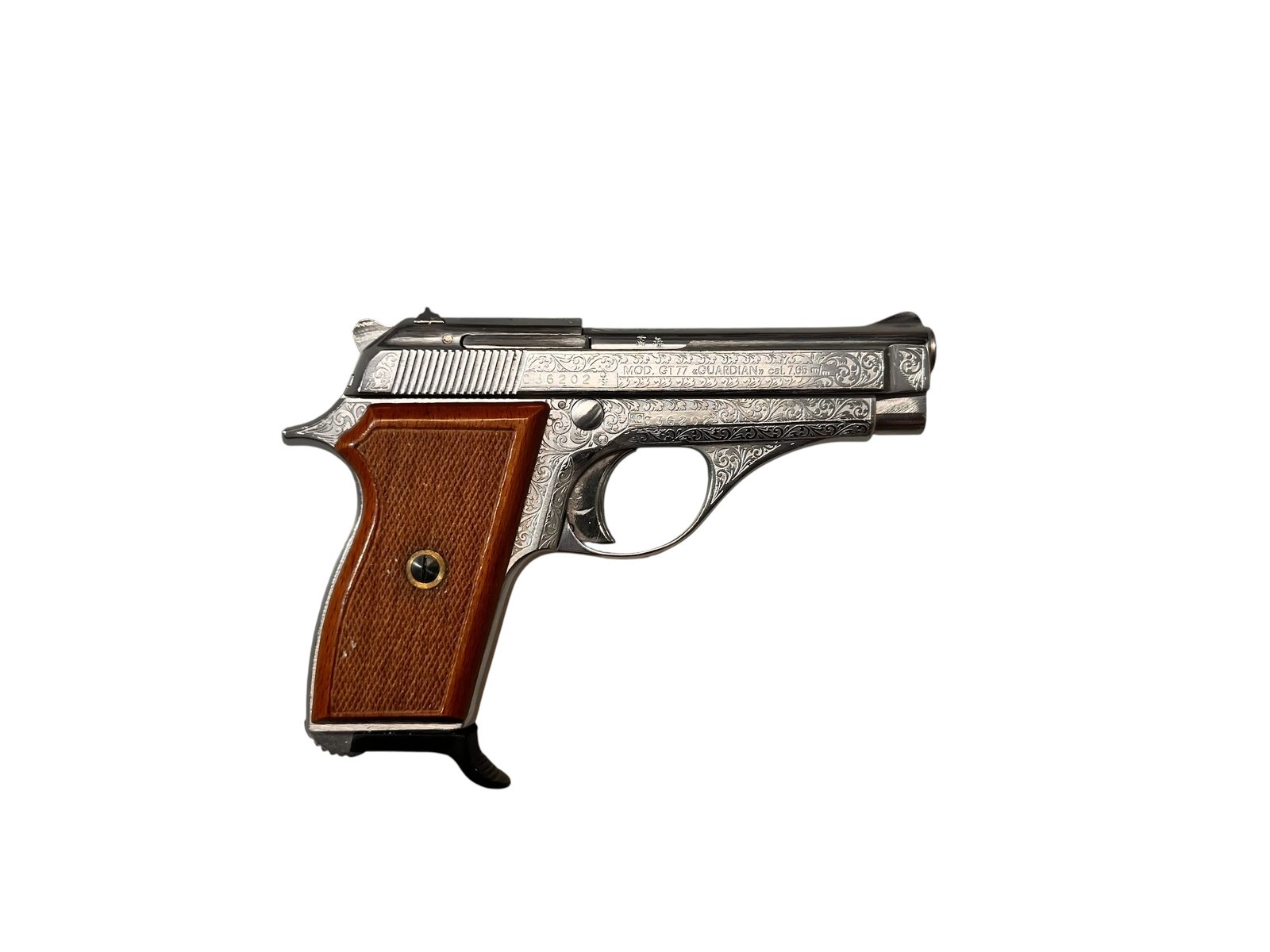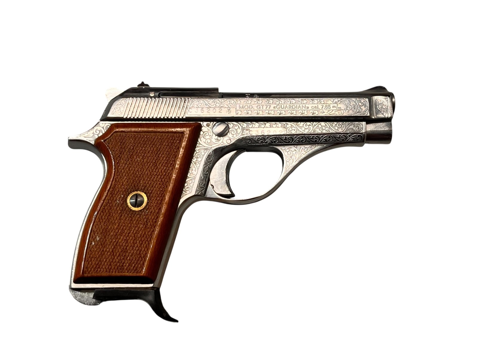 Renato Gamba GT77 Guardian Luxus to coś więcej niż broń – to dzieło sztuki użytkowej. Stworzony przez renomowaną włoską firmę, łączy w sobie klasyczną, sprawdzoną konstrukcję z niezwykłą dbałością o detale. Grawerowany zamek i szkielet czynią każdy egzemplarz wyjątkowym. To doskonała propozycja dla kolekcjonerów oraz strzelców, którzy poszukują niezawodnej, eleganckiej i rzadko spotykanej broni bocznej w popularnym kalibrze 7,65 mm Browning.