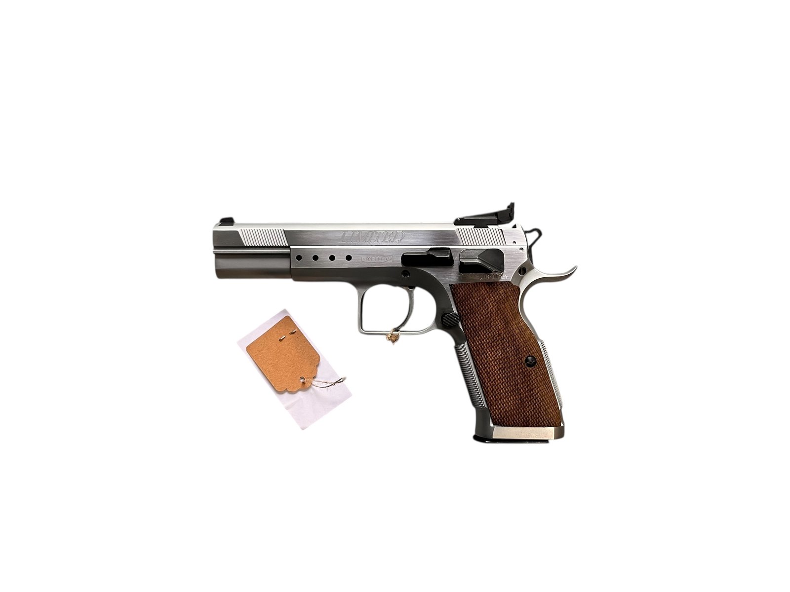 Pistolet Tanfoglio Limited 9×19 mm to precyzyjny, jednofunkcyjny model zaprojektowany z myślą o konkurencjach IPSC Production Class. Wykonany ze stalowego korpusu z wyfrezowanym zamkiem i podwójnym zabezpieczeniem, zapewnia doskonałą ergonomię, płynność pracy i celność. Stan: bardzo dobry.