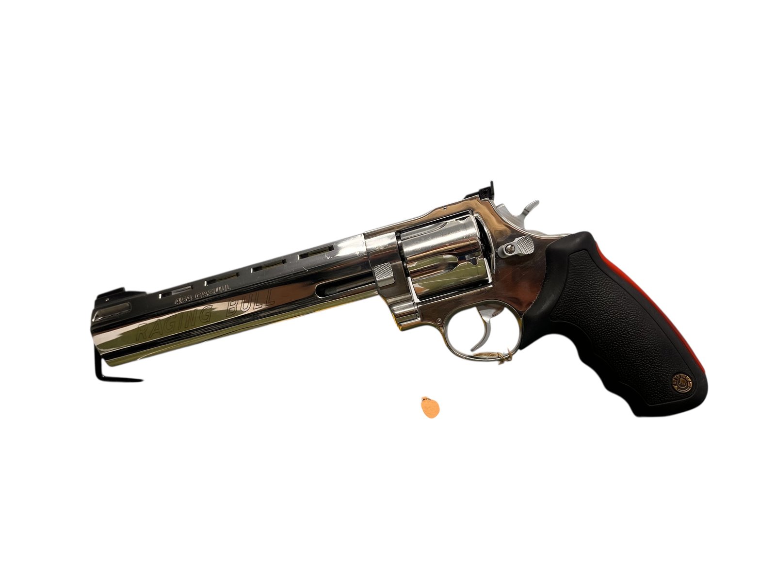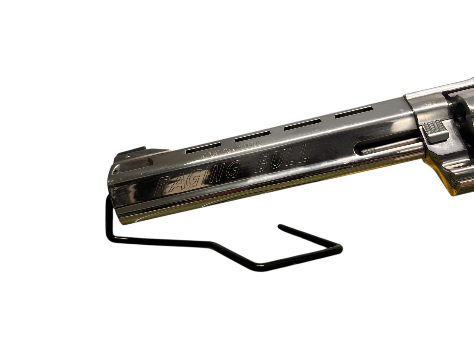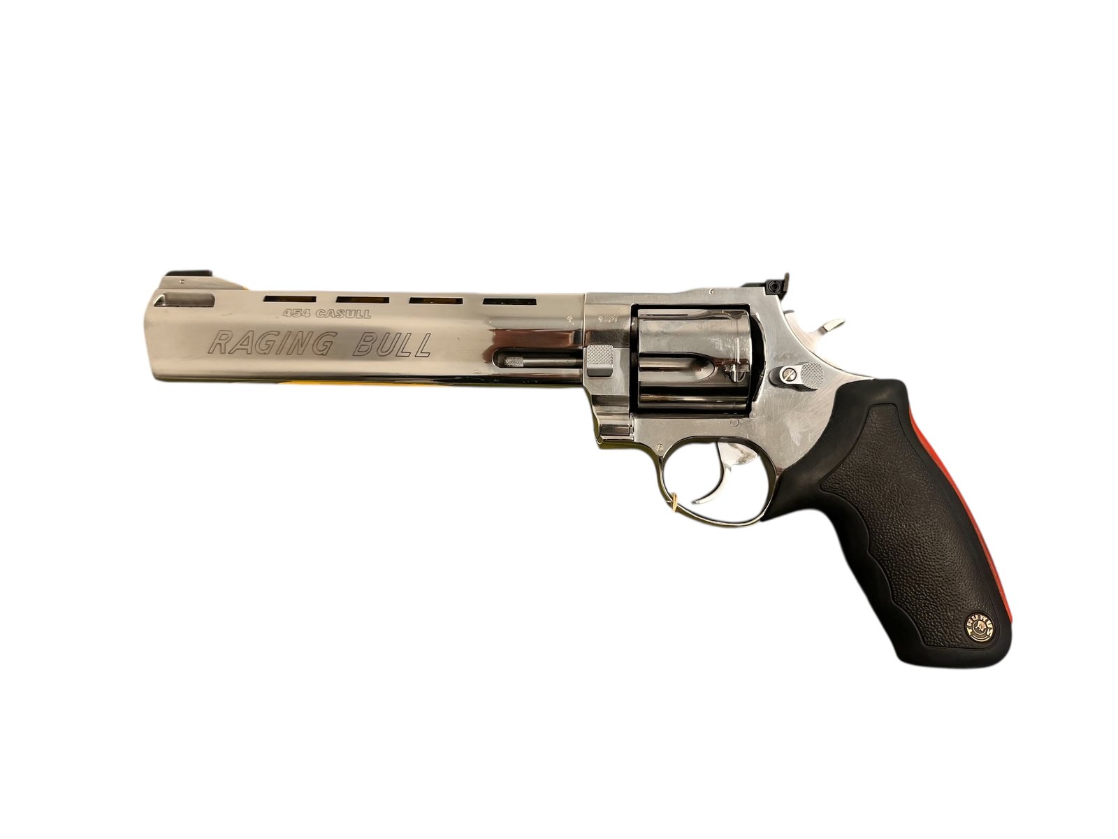 Taurus Raging Bull .454 Casull to masywny rewolwer o wydłużonej lufie, zaprojektowany z myślą o najwyższej mocy i precyzji. Produkowany w Brazylii od 1997 roku przez firmę Taurus, przeznaczony jest do strzelania wyjątkowo silną amunicją .454 Casull. Stanowi jeden z najmocniejszych rewolwerów dostępnych na rynku cywilnym – wyposażony w portowaną lufę (~6,5″), masywny cylinder z podwójnym ryglowaniem, amortyzowaną rękojeść i regulowane przyrządy celownicze. Prezentowany egzemplarz jest w stanie Bardzo dobrym, z dobrze zachowaną konstrukcją i sprawnym mechanizmem.