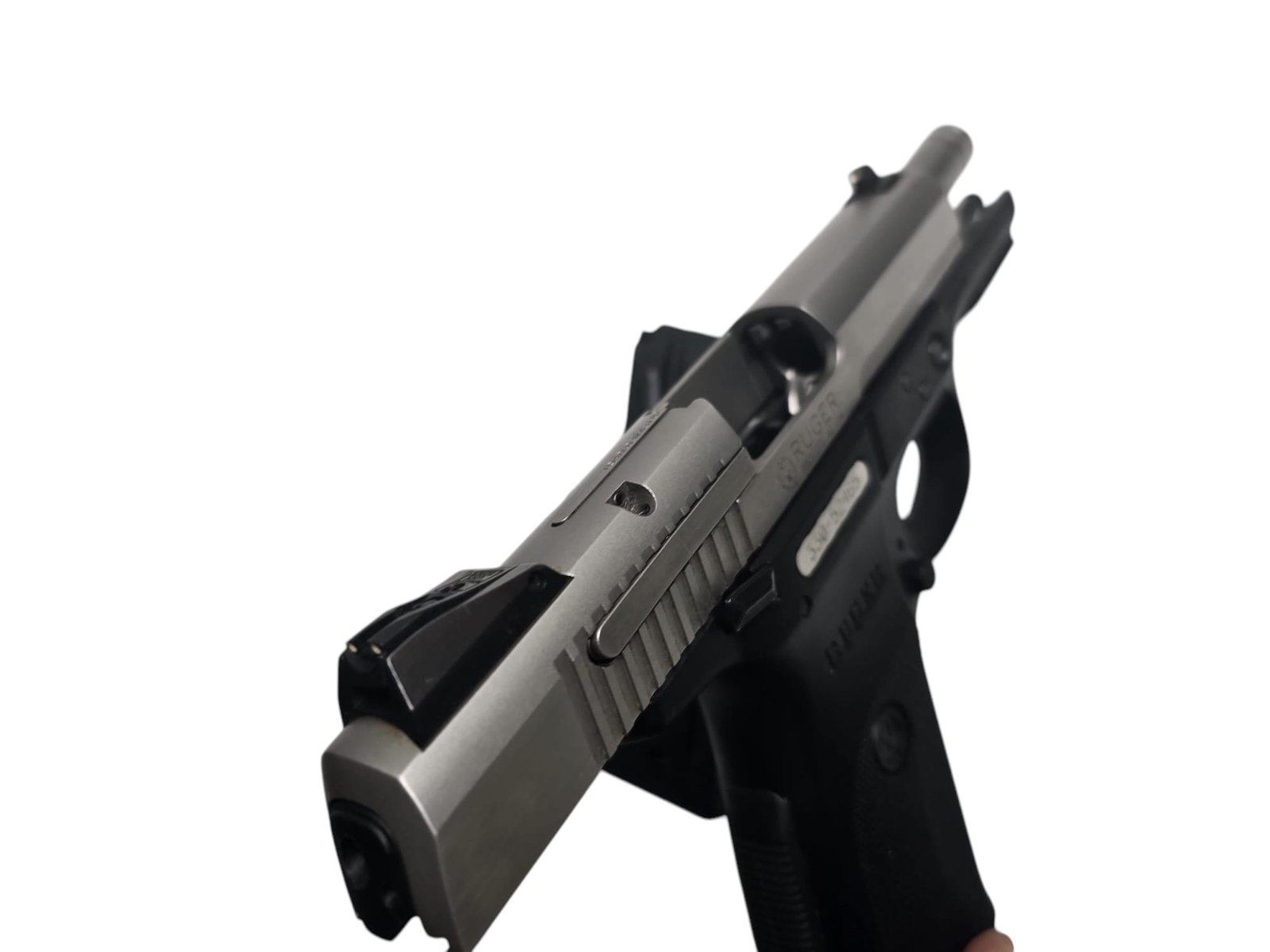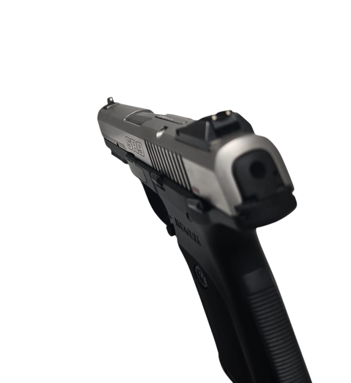 Oferujemy Ruger SR9, nowoczesny pistolet samopowtarzalny w kalibrze 9x19 mm, wyprodukowany w Stanach Zjednoczonych. Stan techniczny broni jest bardzo dobry, a jej ergonomiczna konstrukcja i lekkość czynią ją idealnym wyborem dla strzelców sportowych oraz rekreacyjnych. Dzięki solidnej budowie i płynnemu działaniu mechaniki Ruger SR9 zapewnia wyjątkowy komfort i precyzję podczas użytkowania.