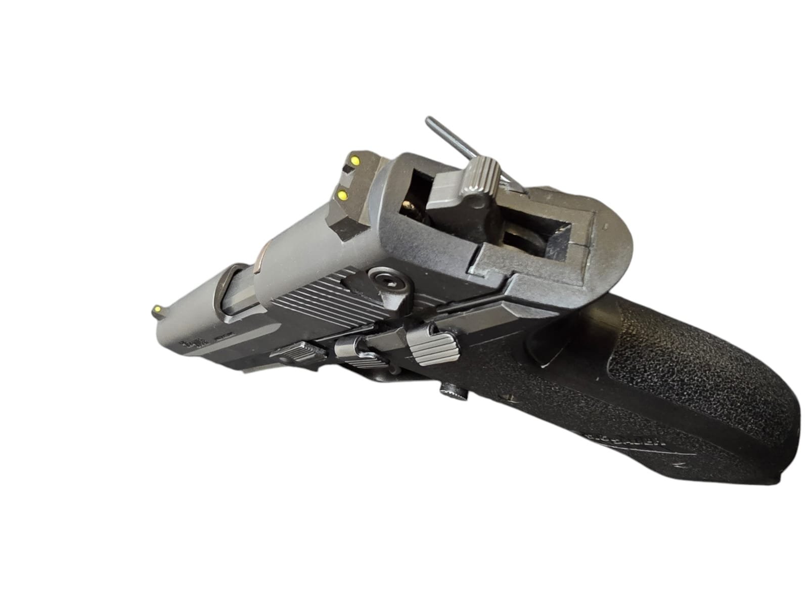 - Ergonomiczny Chwyt: Profilowany uchwyt zapewnia komfort i pewność podczas strzelania.
