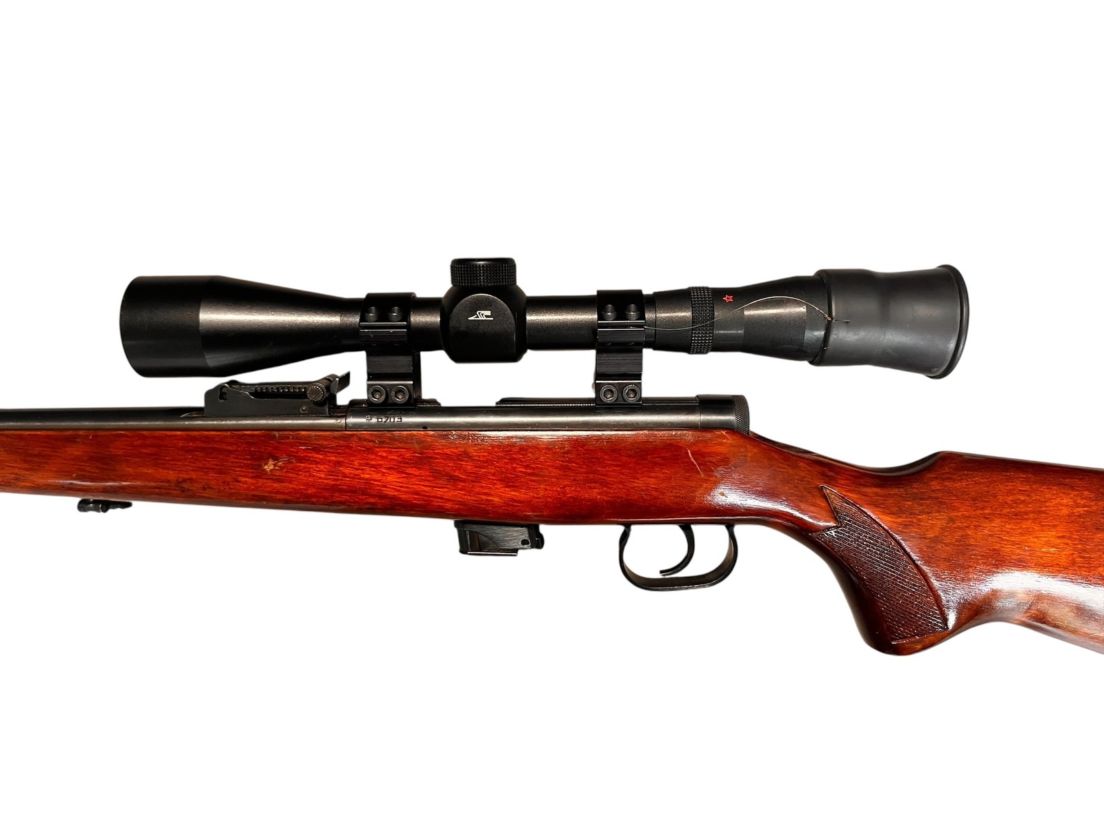Przedstawiamy legendarny radziecki karabinek TOZ 17-01. To idealna propozycja dla majsterkowicza lub osoby, która chce minimalnym kosztem wejść w posiadanie celnej broni bocznego zapłonu. Najważniejszy element – lufa – jest w dobrym stanie z wyraźnym gwintem, co gwarantuje dobre wyniki na tarczy. Broń jest wyposażona w lunetę Tasco, jednak wymaga dokupienia magazynka, by w pełni cieszyć się strzelaniem.