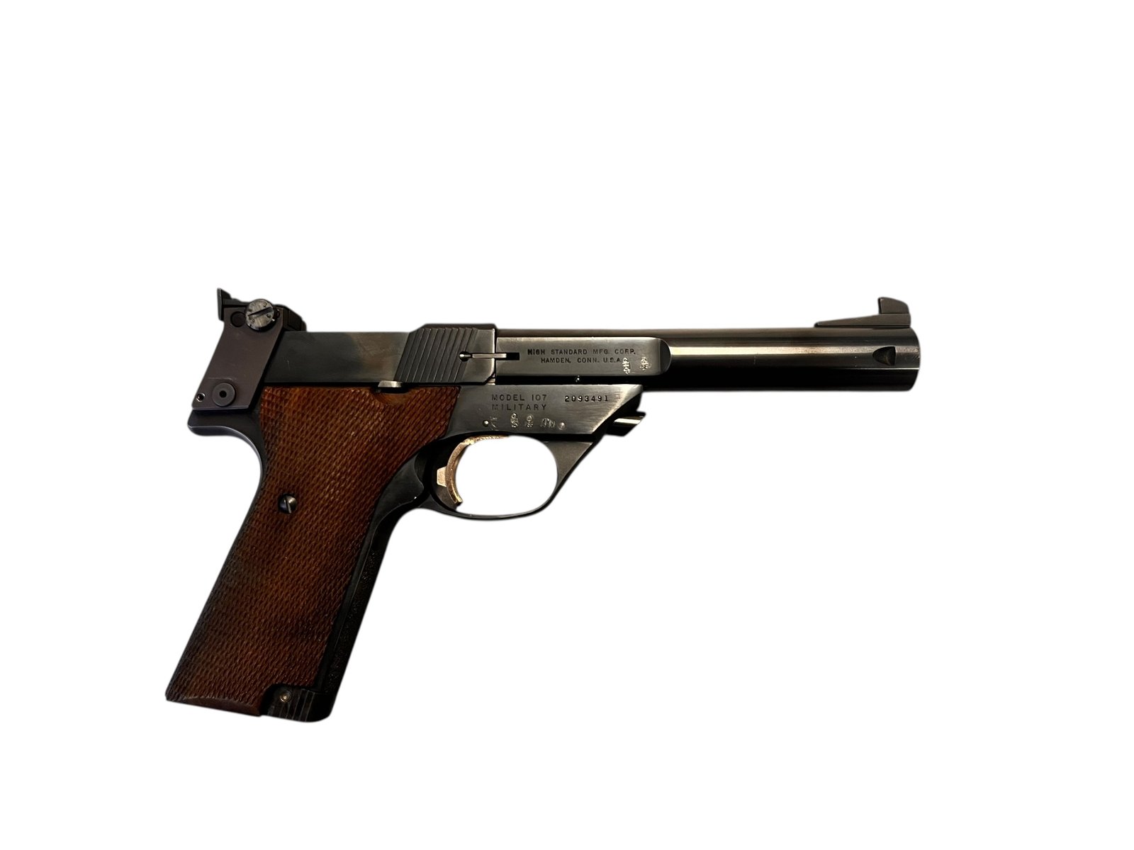 High Standard 107 Military to ikona precyzji, stworzona z myślą o rywalizacji na najwyższym poziomie. To nie jest zwykły pistolet .22 LR – to precyzyjne narzędzie, które dzięki swojej konstrukcji i jakości wykonania pozwala osiągać fenomenalne wyniki na tarczy. Ten egzemplarz jest w bardzo dobrym stanie, gotowy by udowodnić swoją legendarną celność.