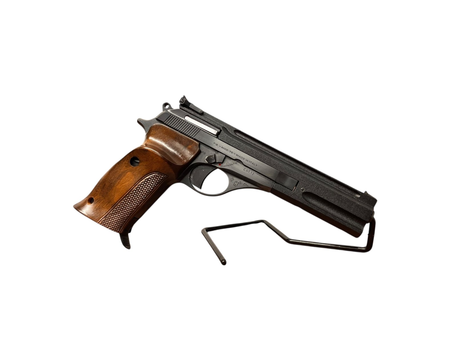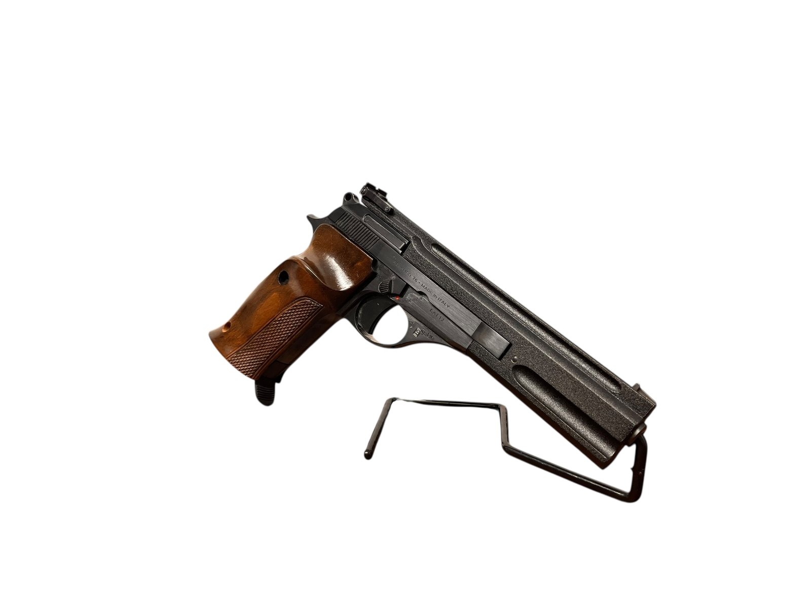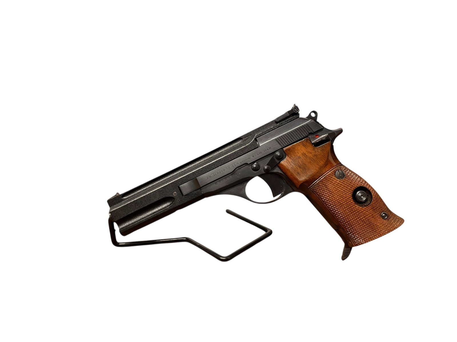 Beretta 76 to legenda strzelectwa precyzyjnego i ikona włoskiego rusznikarstwa. To broń stworzona w jednym celu – dla maksymalnej celności. Jej konstrukcja ze stałą, ciężką lufą i doskonałym spustem pojedynczego działania (Single Action) sprawia, że jest to jeden z najcelniejszych pistoletów bocznego zapłonu, jakie kiedykolwiek wyprodukowano. Ten egzemplarz jest w bardzo dobrym stanie i w kompletnym, kolekcjonerskim zestawie.