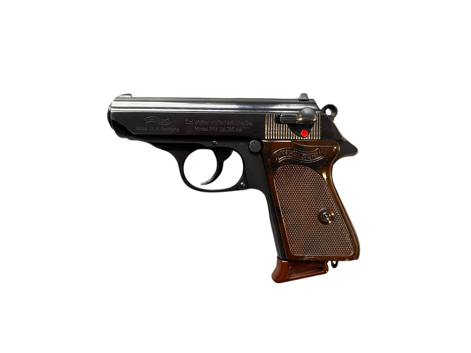 Walther PPK to legenda, której nie trzeba przedstawiać. Ten konkretny egzemplarz, wyprodukowany w 1973 roku w Ulm, to kwintesencja niemieckiej precyzji. Jest w bardzo dobrym stanie, a co najważniejsze – jest to kompletny zestaw z oryginalnym pudełkiem i dodatkowym magazynkiem, co czyni go prawdziwą gratką dla każdego kolekcjonera.