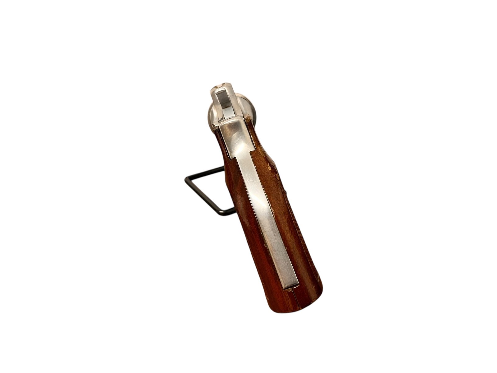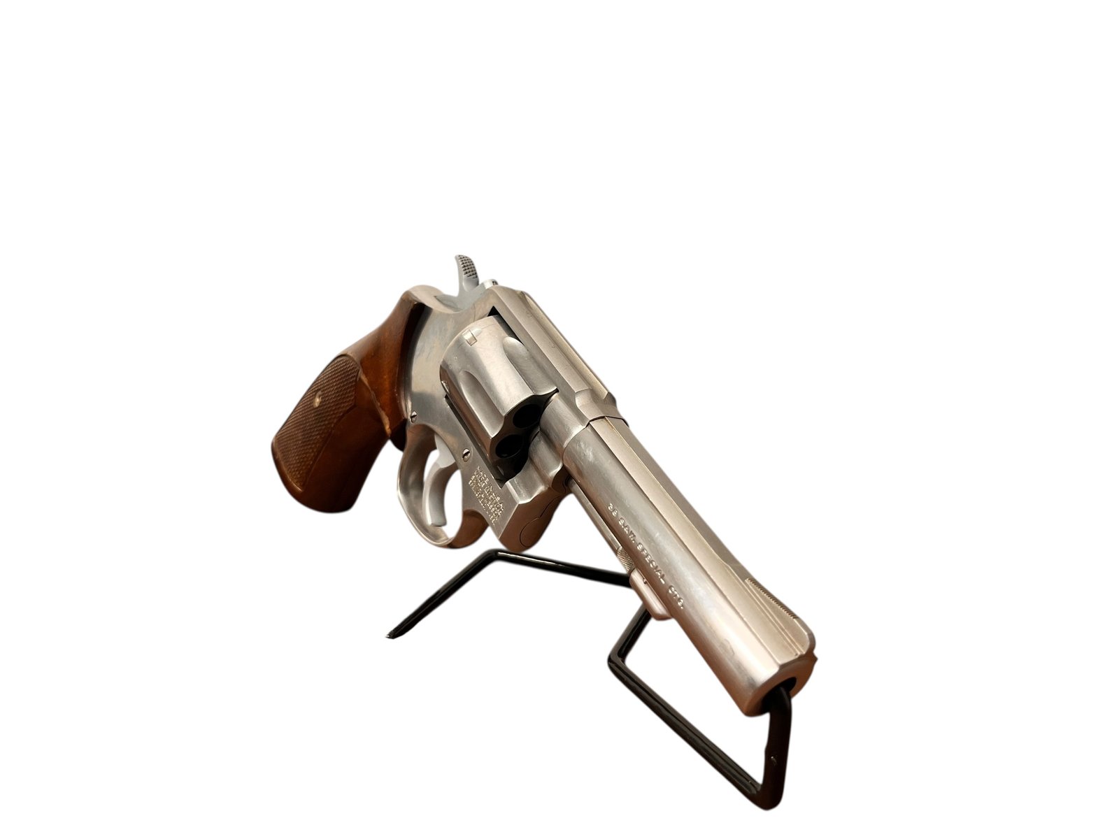 Smith & Wesson 64-3 to legendarny rewolwer służbowy – jest to po prostu nierdzewna wersja najsłynniejszego rewolweru policyjnego w historii, Modelu 10. Ten egzemplarz to kwintesencja filozofii "służbowego wołu roboczego": prosty, niezawodny i zbudowany, by przetrwać wszystko. Wykończenie ze stali nierdzewnej (Inox) czyni go idealnym wyborem na broń, która ma pracować, a nie leżeć w gablocie.